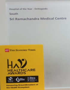 Sri Ramachandra Medical Centre was awarded The Economic Times Healthcare Awards 2023 for Excellence in Healthcare Quality in the field of Orthopedics under the category “Best Hospital of the Year – Orthopaedic” at ITC Maurya, New Delhi, on 24th August 2023.
