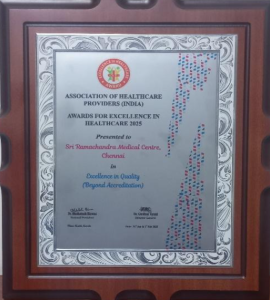 Sri Ramachandra Medical Centre was awarded AHPI Awards 2025 for Excellence in Healthcare in the Category “Excellence in Quality (Beyond Accreditation)” at Hotel Le Meridian, Kochi, Kerala on 1st February, 2025.