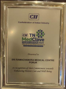 Sri Ramachandra Medical Centre was awarded CII TN’s MedClave Honors 2024 for Excellence in Healthcare in the Specialty “Best Patient Friendly Hospital” at Hotel Radisson, Chennai on 16th November, 2024.